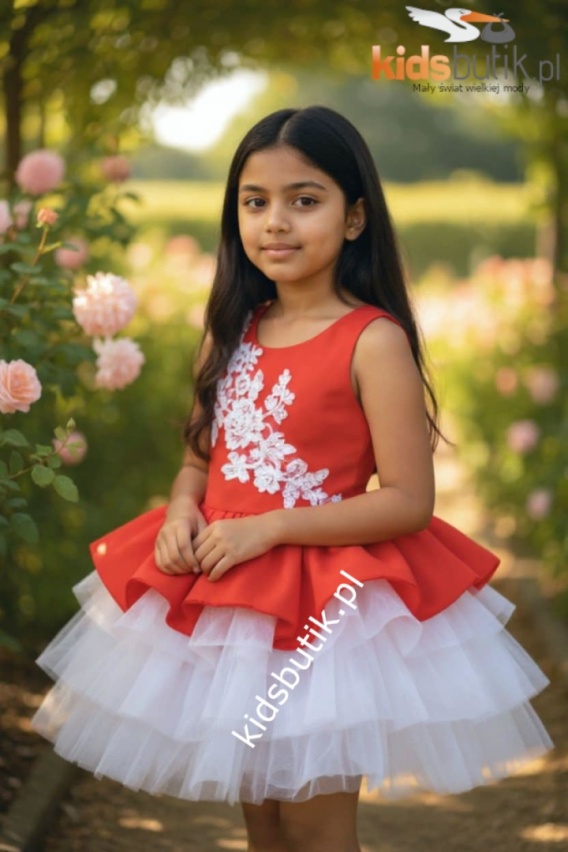 Kolorystyka - czerwona góra/biały, tiulowy dół