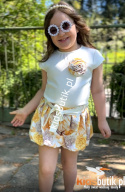 Elegancki komplet Róża: bluzka i spodnico spodenki bombka - żółty i beż