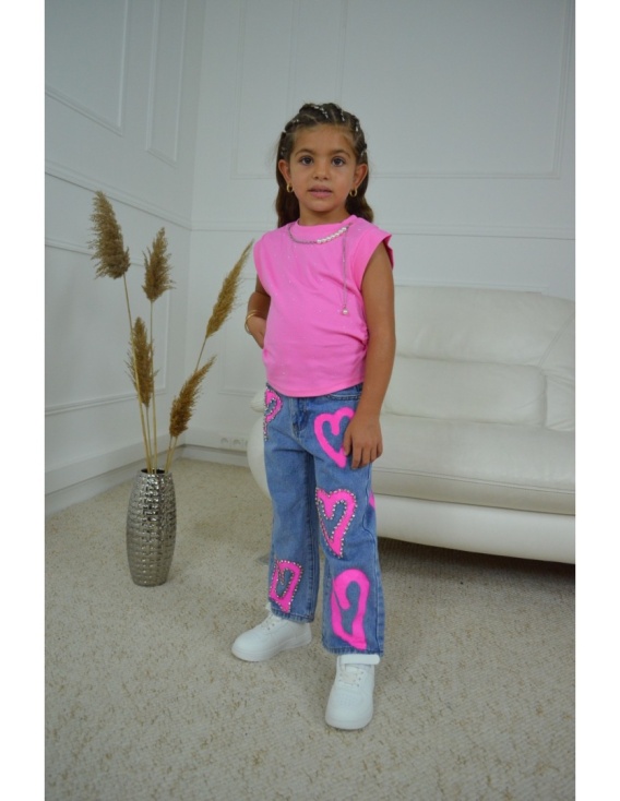 Spodnie jeans RÓŻOWE SERCA Z CYRKONIAMI